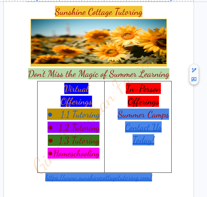 ABOUT Sunshine CottagePrivate tutoring since 2013